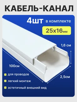 Кабель Канал белый 25х16 мм, 100 см (Универсальный) 4шт