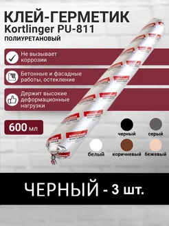 Герметик полиуретановый PU-811 600 мл. Черный, 3 шт