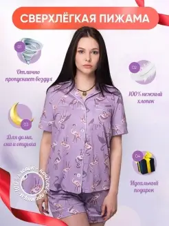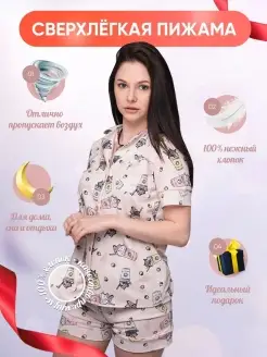Пижама женская женская с шортами Костюм домашний Женский кос…