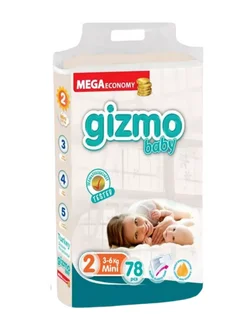 Подгузники детские 3-6кг 2 размер 78шт Gizmo Baby