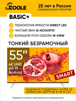 Телевизор с тонкой рамкой 55", SMART TV, 4K UHD