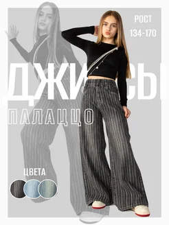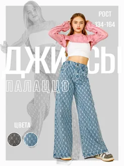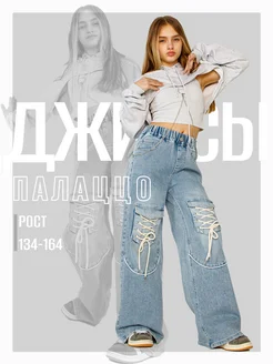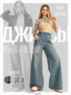 Широкие джинсы палаццо Y2K для подростков на резинке