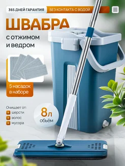 Швабра и ведро с отжимом для мытья пола +5 насадок