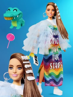 Шарнирная кукла Барби Экстра в радужном платье GYJ78