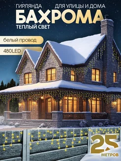 Гирлянда уличная Бахрома 25 м 480 LED желтый теплый свет