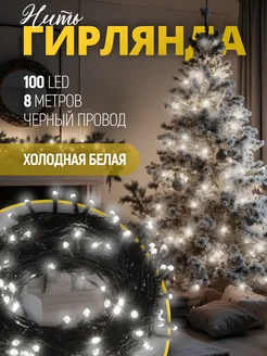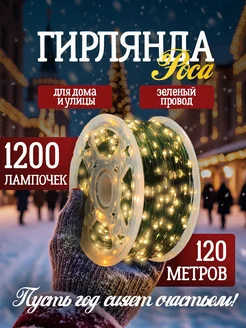 Гирлянда нить роса 120 м 1200 LED свет желтый холодный