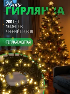 Гирлянда сияние 15 м 200 LED свет теплый желтый
