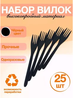 Вилки черные одноразовые матовые 18 см 25 шт