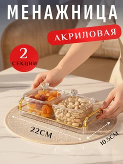 Менажница акриловая с крышкой и подставкой для сухофруктов
