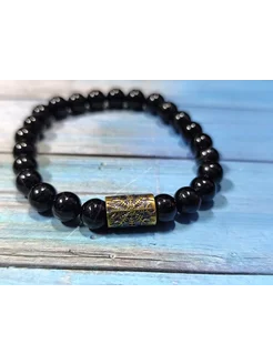 Браслет черный агат с бусиной "Шлем ужаса" ( бронза)
