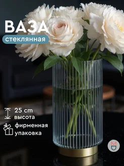 Стеклянная ваза для цветов и сухоцветов декор дома