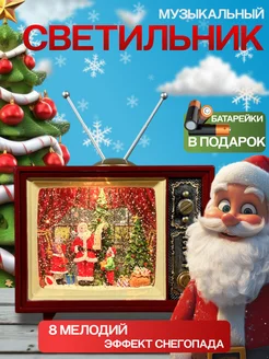 Светильник новогодний большой ретро телевизор с 8 мелодиями