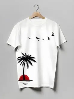 Футболка Пальмы Солнце Море Птицы Минимализм Летний Принт
