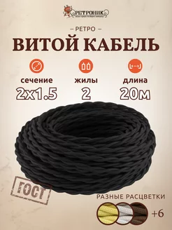Витой ретро провод кабель электрический 2х1.5, (20 м)