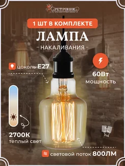 Ретро лампочка Эдисона e27 накаливания винтажная, 60 w