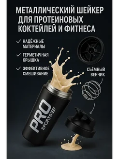 Металлический шейкер для протеиновых коктейлей и фитнеса