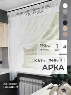 Тюль штора арка левый белый вуаль 170 на карниз 120-180 L