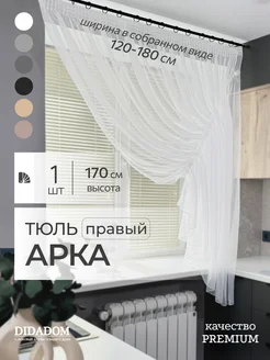 Тюль штора арка правый белый вуаль 170 на карниз 120-180 R