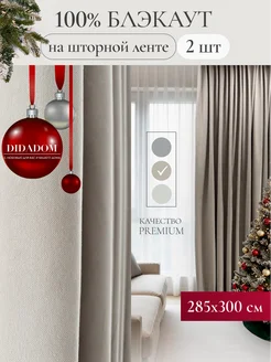 Шторы 100% блэкаут на шторной ленте 2 шт по 285х300