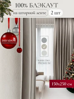 Шторы 100% блэкаут на шторной ленте 2 шт по 150х250
