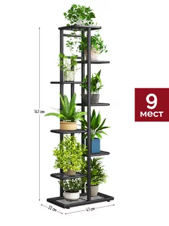 Подставка для цветов напольная металлическая, 9 мест, 141 см