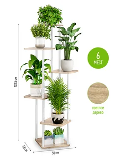 Подставка для цветов, 6 полок, 58х58х132,5 см