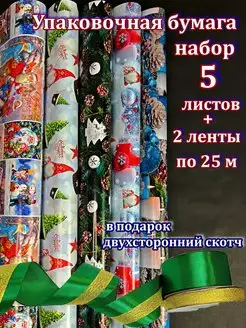 Упаковочная бумага новогодняя набор с лентами