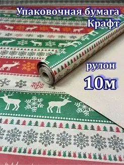 Упаковочная бумага новогодняя для подарков Крафт рулон 10м