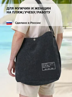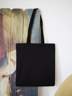Холщовая сумка-шоппер черная канвас через плечо кнопка