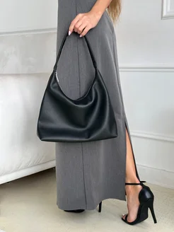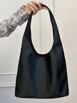 Сумка хобо-шоппер черная через плечо на экокожа