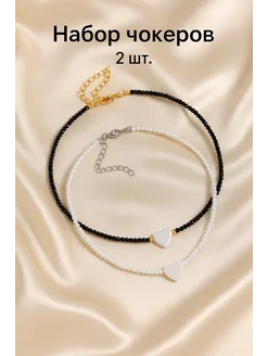 Чокер на шею из бисера. Сердце подвеска.Комплект украшения