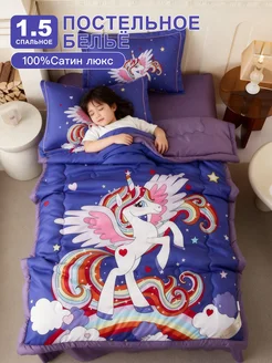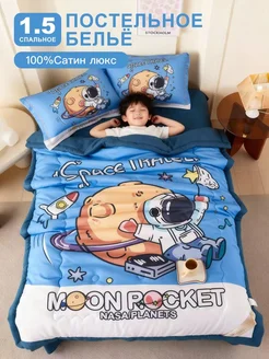 Постельное белье с одеялом 1.5 спальное Сатин Люкс ET-002