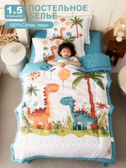 Постельное белье с одеялом 1.5 спальное Сатин Люкс ET-009