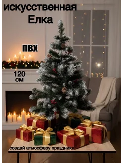 Елка искусственная с шишками и ягодами 120см
