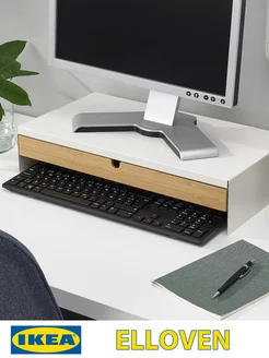 ELLOVEN Подставка для монитора с выдвижным ящиком, белая