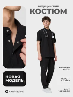 Медицинский хирургический костюм со стойкой стрейч черный