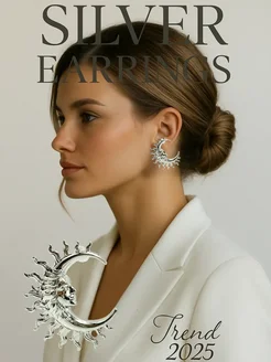 Серьги Луна бижутерия под серебро, модные женские 2025