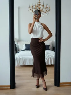 Юбка миди с сеткой русалка
