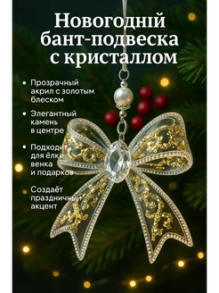 Новогоднее украшение бант с кристаллом на елку 2шт