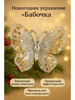 Новогоднее украшение хрустальная бабочка на елку 2шт