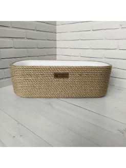 Овальное кашпо из джута 4 л, со вставкой, ручная работа