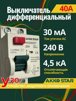 УЗО 40А 30мА AC 2P устройство защитного отключения