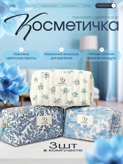 Косметичка тканевая набор 3 шт с цветочным принтом