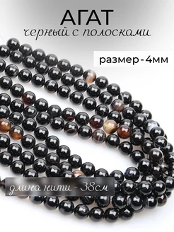 Черный агат с полосками 4 мм, бусины из натуральных камней