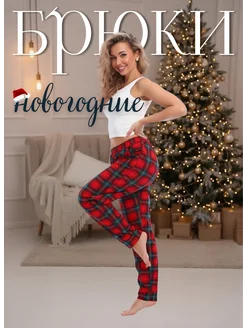 Пижама новогодняя в клетку со штанами и футболкой хлопок