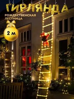 Гирлянда Дед Мороз на лестнице