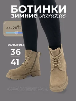 Ботинки женские полусапожки замшевые зимние на шнуровке