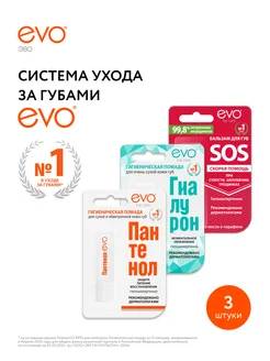 Пантенол + Гиалурон + SOS набор ухода за губами, 2,8г х 3шт