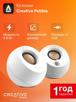 Колонки для компьютера Pebble 2.0, 8.8 Втт, (Белые)