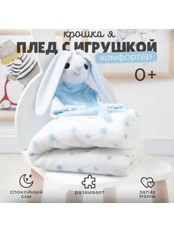 Плед детский с игрушкой «Зайка» 75×90 см, голубой